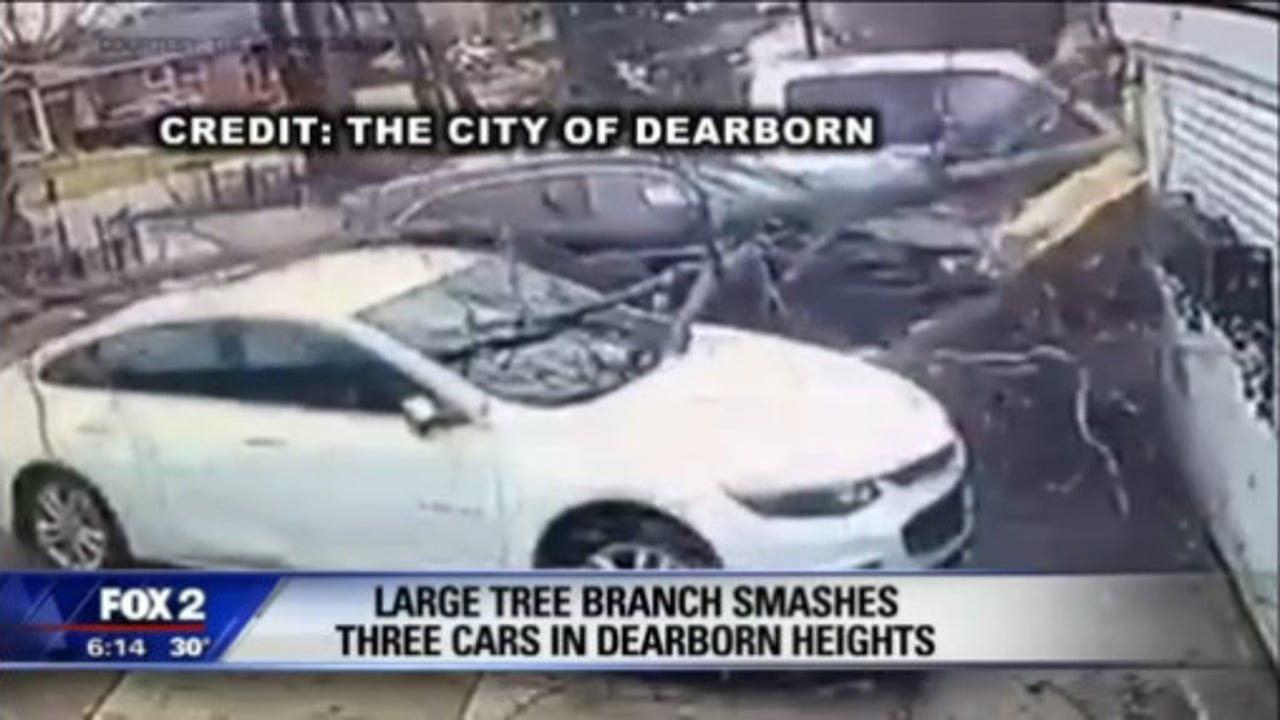Large Tree Branch Smashes Three Cars In Dearborn Heights